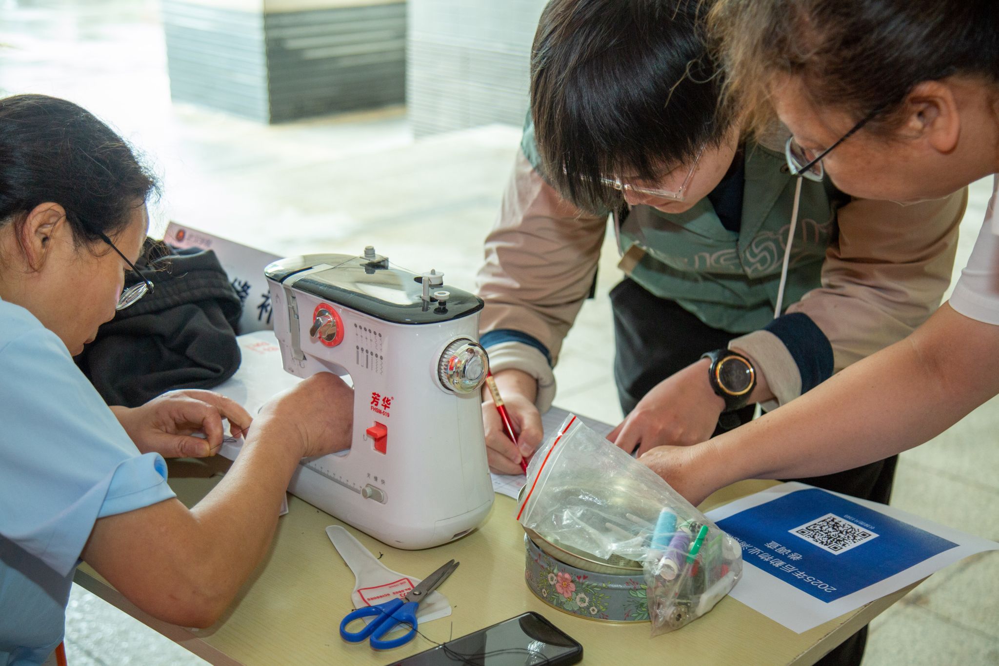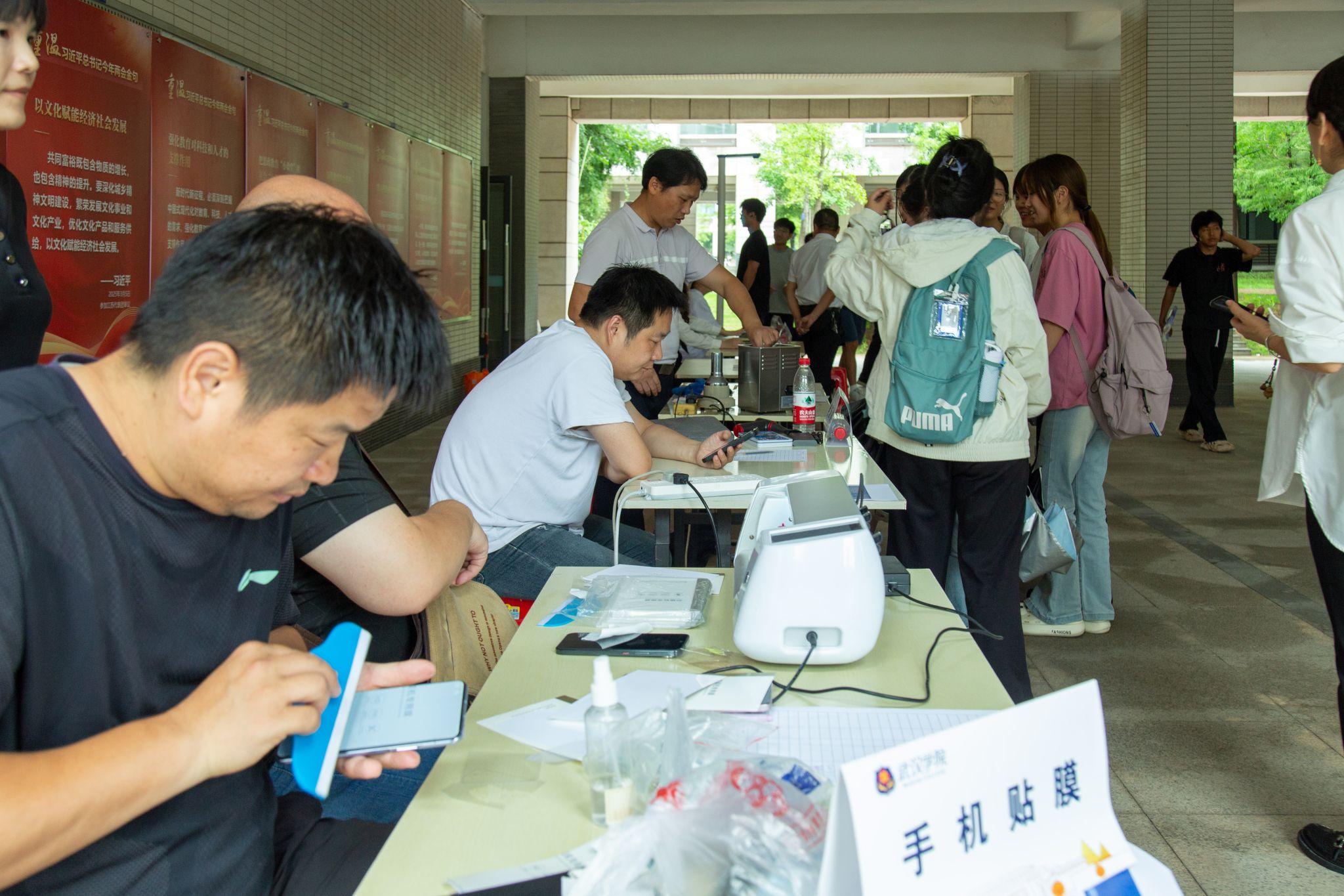 活动现场,衣物缝补、地垫及电扇深度清洁、电脑除尘养护、眼镜清洗维修等传统服务项目有序开展,精准对接师生日常需求,赢得广泛好评。