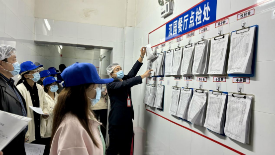 在各食堂经理引导下,检查小组先后走进后厨、仓库、档口及监控室等,围绕食品安全、环境卫生、服务质量、创新管理四大维度考核打分,全程遵循“公平、公正、公开”原则,通过现场核验、随机抽检、人员提问、台账审查、后台监控观察等多元方式,对食堂运营各环节进行细致评估。