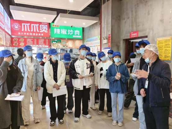 互动环节中,师生代表围绕关键问题提问:汉园食堂内,有学生问及监控实效,袁经理现场演示AI系统的陌生人员与鼠害识别功能,说明异常情况会实时报警;楚园食堂里,学生关心食材新鲜度,周经理解释“库存不超营业额30%、无剩菜剩饭”的管理策略。