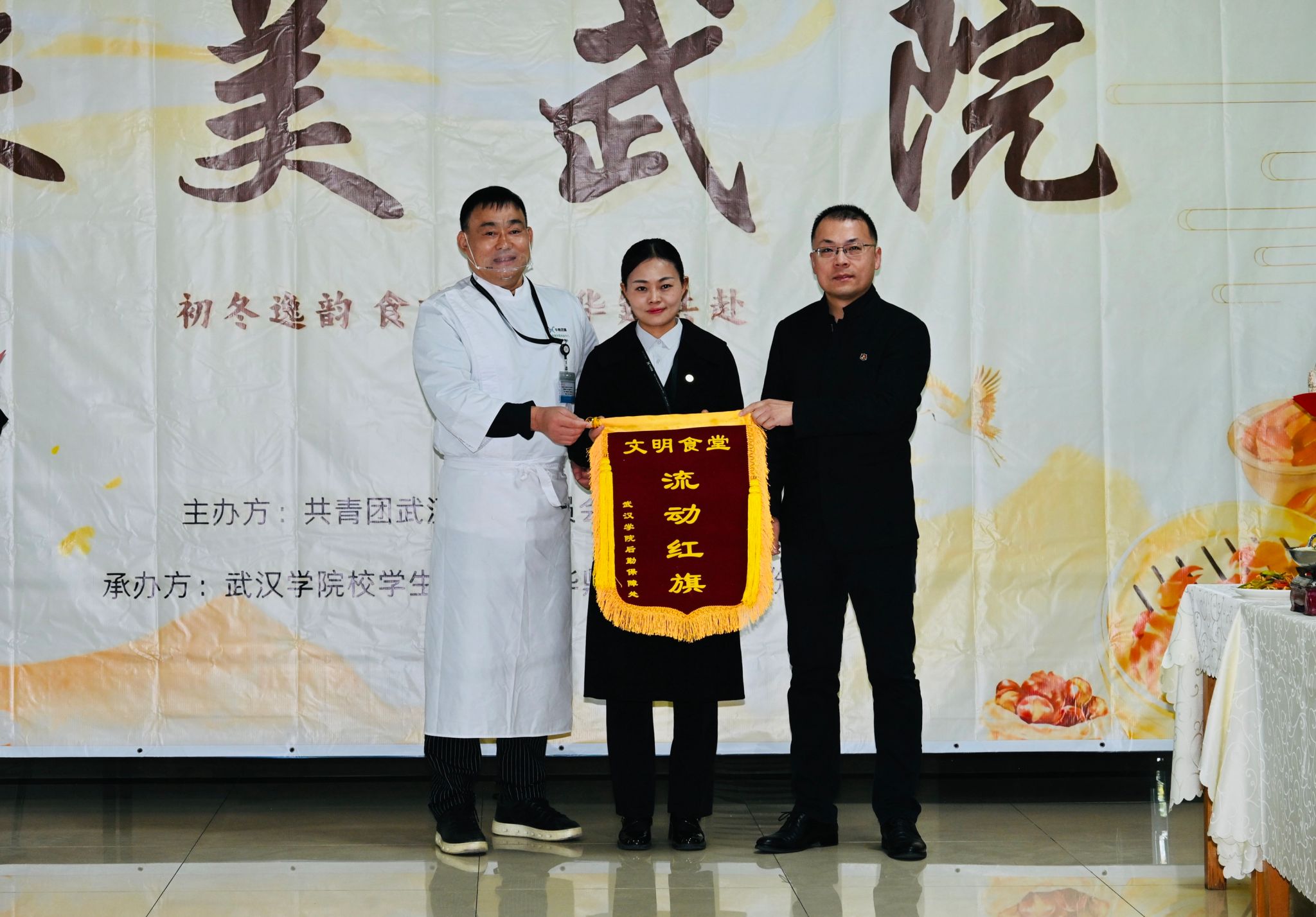 活动现场相继揭晓了本年度“文明食堂”与“文明档口”的获奖结果。胡达丰为荣获“文明食堂”称号的楚园食堂颁发锦旗;后勤保障处处长董运祥为获奖窗口代表授予“文明档口”锦旗。现场掌声雷动,表达了对获奖单位的充分肯定与热烈祝贺。