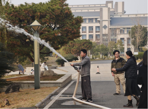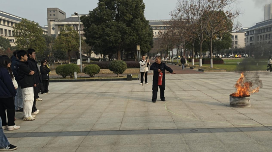 12月10日下午3时,后勤保障处义务消防队联合教务处,在图书馆广场面向全校实验室教师开展了消防器械操作专项培训。