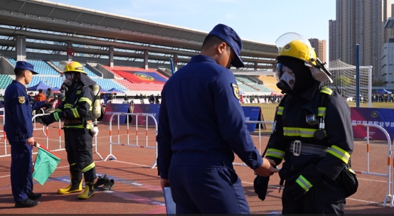 在灭火救援类项目中,队员以快速精准的装备穿戴、高效连贯的水带连接、规范有效的灭火操作,展现了出色的初期火灾处置能力;