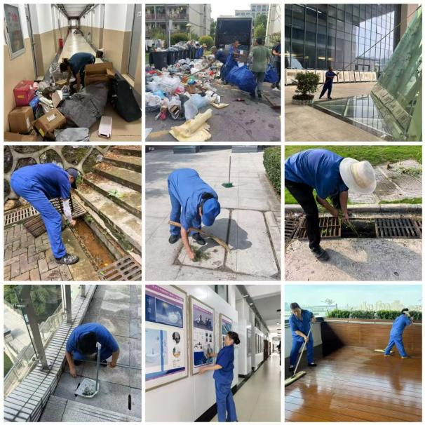 3.环境整治:清理换寝宿舍杂物及打扫新生宿舍卫生、天台排水沟、死角及外围停车位杂物。