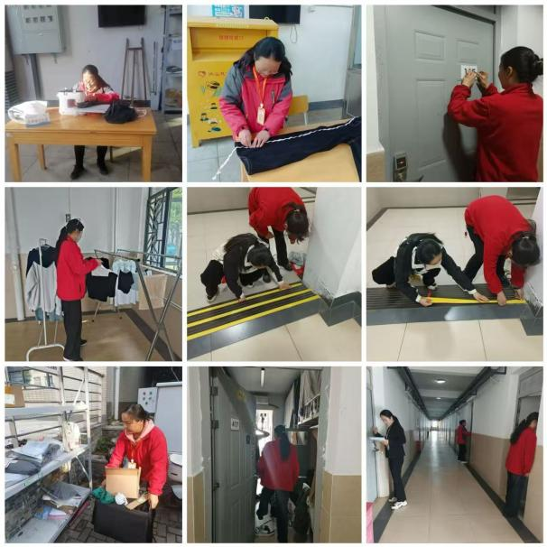 2.宿舍事务管理:开展早送晚迎服务;规整自行车、晾衣架及掉落衣物;提醒清理宿舍门口占道垃圾;清理宿舍楼岗亭快递货架和楼道广告,宿舍楼安装防滑条,对宿舍楼进行安全大检查。