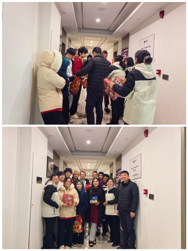 2.物业管理服务中心慰问春节期间留校的留学生。