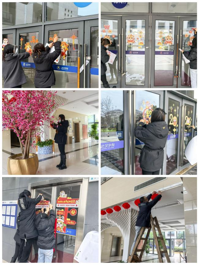 3.对行政楼、图书馆、学院楼、教师公寓进行新春布置,营造节日氛围。